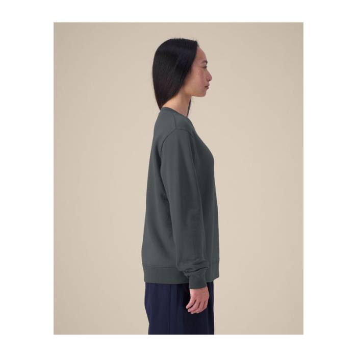 A The Stella Thinker egy puha, újrahasznosított pamutkeverékből készült női pulóver. Letisztult szabása és puha tapintása hosszantartó kényelmet és mindennapi sokoldalúságot kínál. Üzleti viseletnek, lifestyle márkákhoz és brandingelt kollekciókhoz tervezték; bevarrt ujjakkal, bordás passzékkal és ikertűs tűzéssel készült az alaktartás érdekében. A belső halszálka mintás nyakszalag és a félhold alakú tarkóbetét finom belső részleteket adnak. Ez a fenntartható pulóver sima és megbízható alapot nyújt hímzéshez vagy nyomtatáshoz – ideális céges logózáshoz és környezetbarát kollekciókhoz.