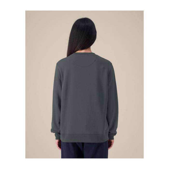 A The Stella Thinker egy puha, újrahasznosított pamutkeverékből készült női pulóver. Letisztult szabása és puha tapintása hosszantartó kényelmet és mindennapi sokoldalúságot kínál. Üzleti viseletnek, lifestyle márkákhoz és brandingelt kollekciókhoz tervezték; bevarrt ujjakkal, bordás passzékkal és ikertűs tűzéssel készült az alaktartás érdekében. A belső halszálka mintás nyakszalag és a félhold alakú tarkóbetét finom belső részleteket adnak. Ez a fenntartható pulóver sima és megbízható alapot nyújt hímzéshez vagy nyomtatáshoz – ideális céges logózáshoz és környezetbarát kollekciókhoz.