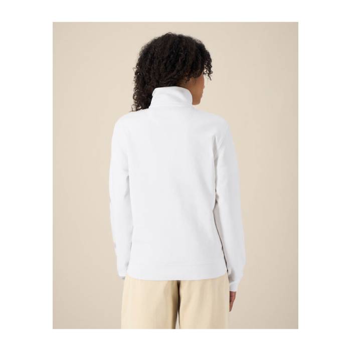 A Trailer 2.0 egy uniszex cipzáras pulóver, amely organikus pamut és újrahasznosított poliészter keverékéből készült. Puha tapintású, közepes fazonú, kényelmes és mindennapi viseletre tervezett. A magas nyakú gallér és a letisztult fém cipzár elegáns, modern megjelenést kölcsönöz a pulóvernek, amely ideális üzleti ruházatként, klubokba és egyesületekbe. A bevarrt ujjak, a zseb előtti varrások és az 1x1-es bordás mandzsetták és szegélyek strukturált megjelenést és mozgásszabadságot biztosítanak. A belső részen a hátulján halszálkás nyakpánt és a szövetből készült félhold alakú díszítés növeli a kényelmet és a kifinomultságot. Ez a magas nyakú pulóver sima felületet biztosít hímzéshez vagy nyomtatáshoz, így tökéletes alapot nyújt személyre szabott és professzionális viselethez.