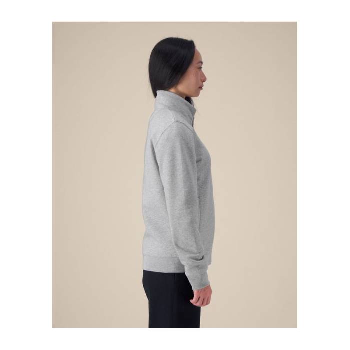 A Trailer 2.0 egy uniszex cipzáras pulóver, amely organikus pamut és újrahasznosított poliészter keverékéből készült. Puha tapintású, közepes fazonú, kényelmes és mindennapi viseletre tervezett. A magas nyakú gallér és a letisztult fém cipzár elegáns, modern megjelenést kölcsönöz a pulóvernek, amely ideális üzleti ruházatként, klubokba és egyesületekbe. A bevarrt ujjak, a zseb előtti varrások és az 1x1-es bordás mandzsetták és szegélyek strukturált megjelenést és mozgásszabadságot biztosítanak. A belső részen a hátulján halszálkás nyakpánt és a szövetből készült félhold alakú díszítés növeli a kényelmet és a kifinomultságot. Ez a magas nyakú pulóver sima felületet biztosít hímzéshez vagy nyomtatáshoz, így tökéletes alapot nyújt személyre szabott és professzionális viselethez.