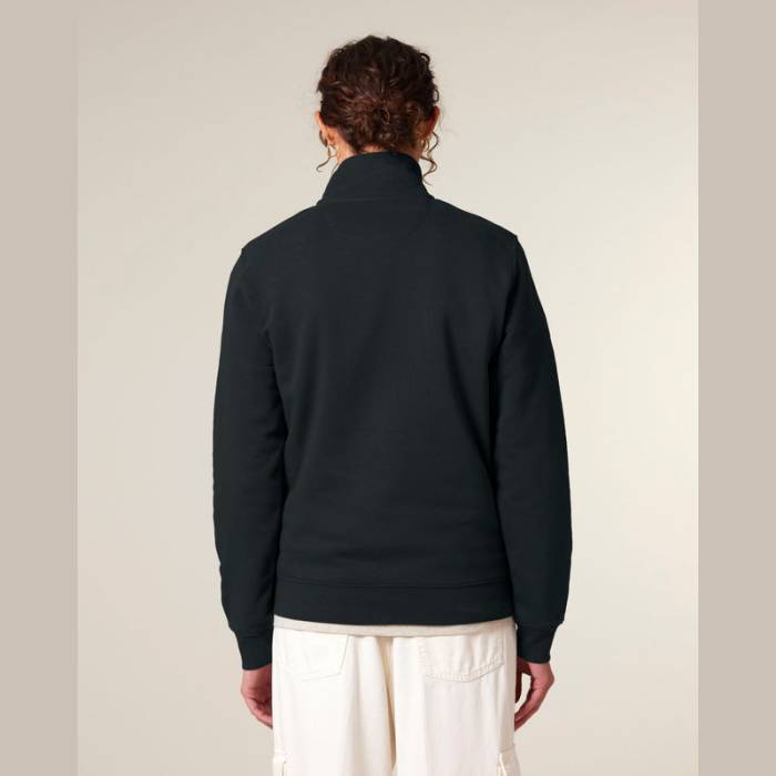 Uniszex negyed cipzáras pulóver modern szabással. 85% organikus pamutból és 15% újrahasznosított poliészterből készült.