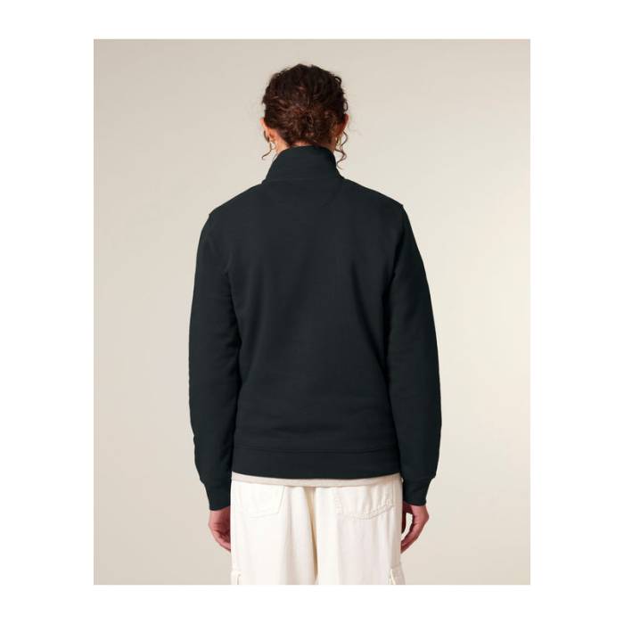 Uniszex negyed cipzáras pulóver modern szabással. 85% organikus pamutból és 15% újrahasznosított poliészterből készült.