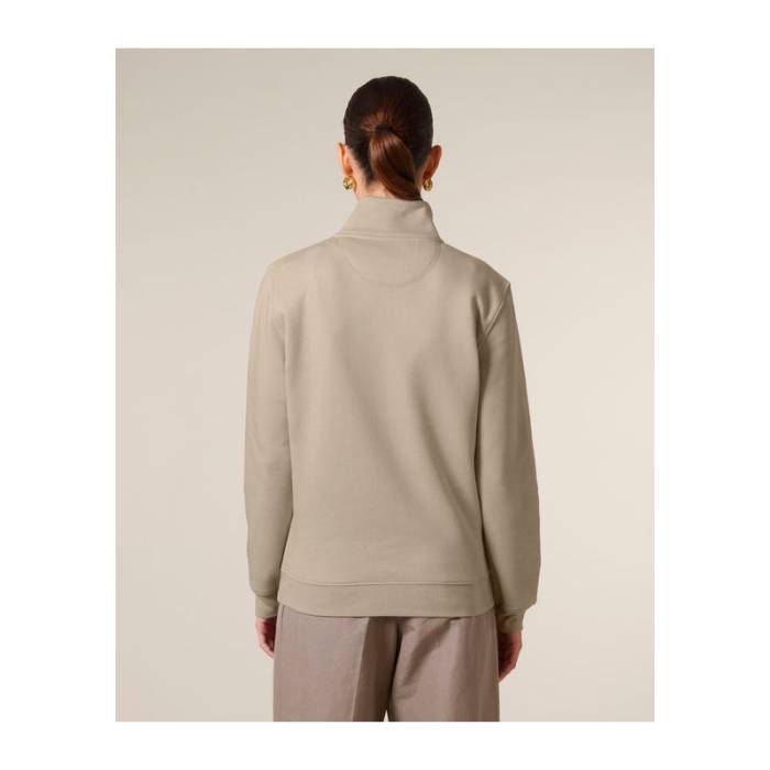 Uniszex negyed cipzáras pulóver modern szabással. 85% organikus pamutból és 15% újrahasznosított poliészterből készült.