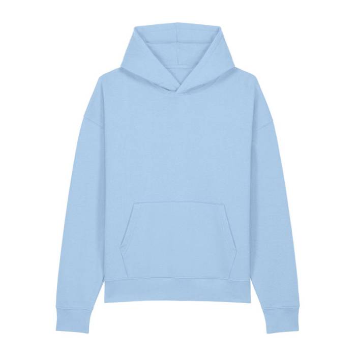 Bevarrt ujjak. Az anyagával bélelt kapucni. 1x1 bordás mandzsetta az ujjak végén és az alsó szegélynél. Kenguruzseb. Halszálkamintás szalag a nyak belső részén. Félhold alakú betét a hátsó nyakrészben.