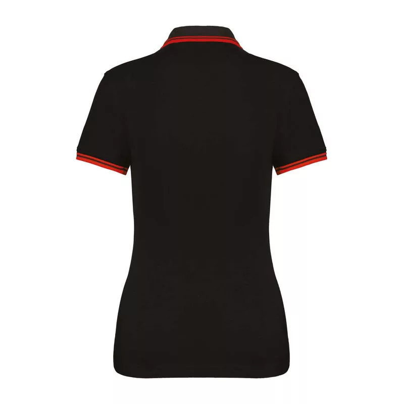 Ladie'S 2 Striped Short Sleeved Poloshirt (M, Black/Red)
