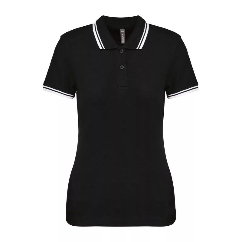 Ladie'S 2 Striped Short Sleeved Poloshirt (L, Black/White)