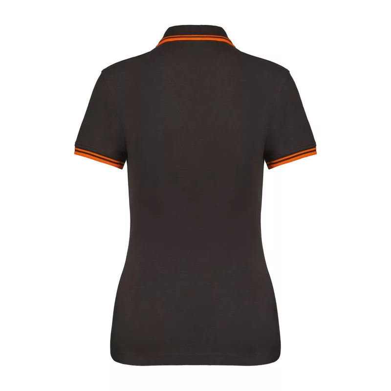Ladie'S 2 Striped Short Sleeved Poloshirt (XS, Dark Grey/Orange)