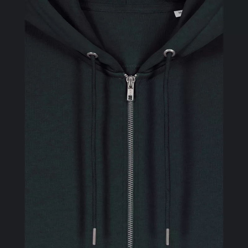 Stílusos, 350 g/m² súlyú, bolyhosított polár kapucnis pulóver modern szabásvonallal, teljes cipzárral és kenguruzsebekkel rendelkezik. 100% organikus pamutból készült.