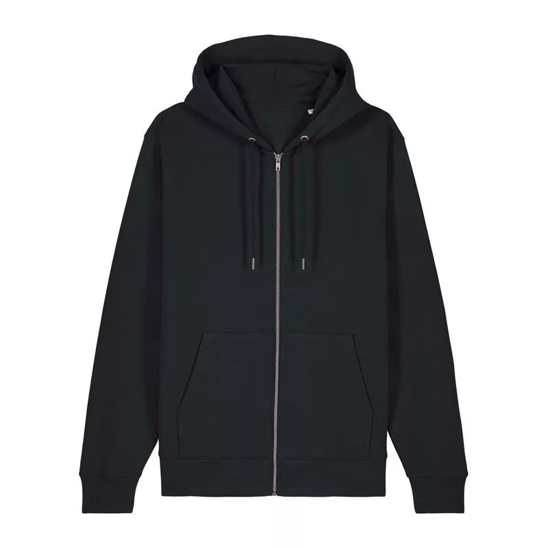 Stílusos, 350 g/m² súlyú, bolyhosított polár kapucnis pulóver modern szabásvonallal, teljes cipzárral és kenguruzsebekkel rendelkezik. 100% organikus pamutból készült.
