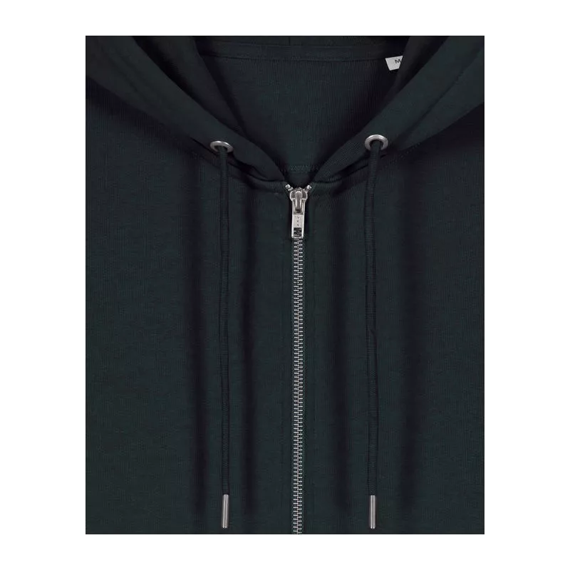 Stílusos, 350 g/m² súlyú, bolyhosított polár kapucnis pulóver modern szabásvonallal, teljes cipzárral és kenguruzsebekkel rendelkezik. 100% organikus pamutból készült.