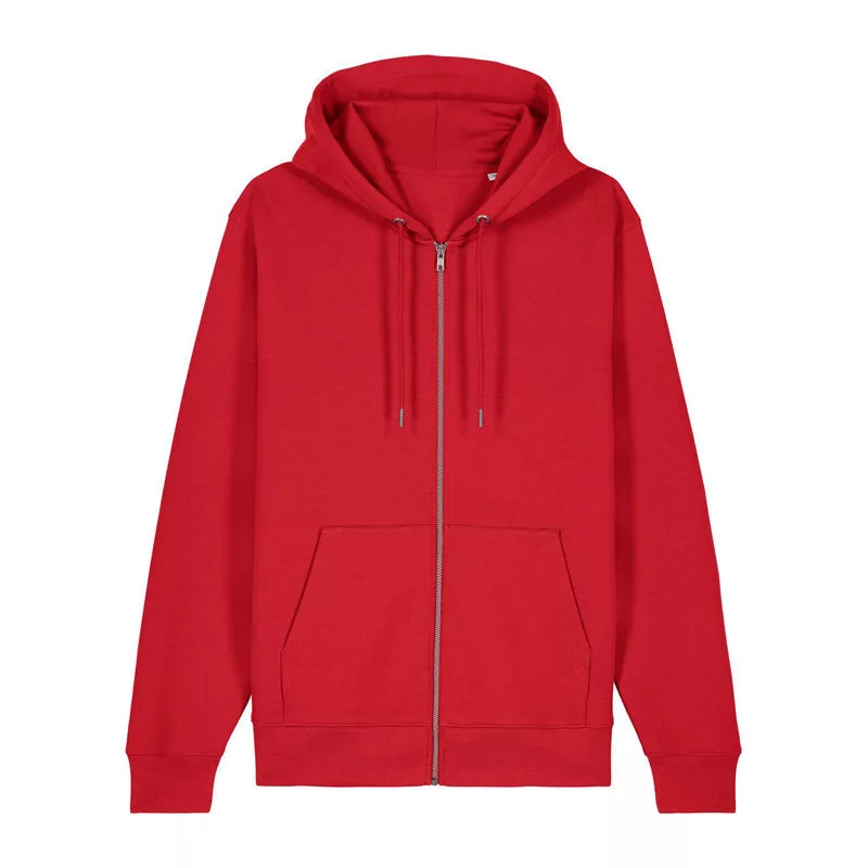 Stílusos, 350 g/m² súlyú, bolyhosított polár kapucnis pulóver modern szabásvonallal, teljes cipzárral és kenguruzsebekkel rendelkezik. 100% organikus pamutból készült.