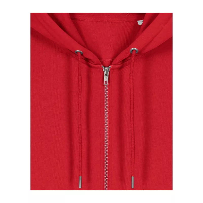 Stílusos, 350 g/m² súlyú, bolyhosított polár kapucnis pulóver modern szabásvonallal, teljes cipzárral és kenguruzsebekkel rendelkezik. 100% organikus pamutból készült.
