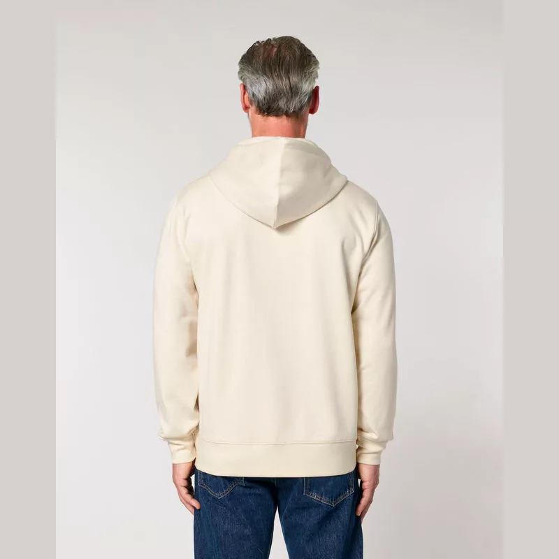 Stílusos, 350 g/m² súlyú, bolyhosított polár kapucnis pulóver modern szabásvonallal, teljes cipzárral és kenguruzsebekkel rendelkezik. 100% organikus pamutból készült.