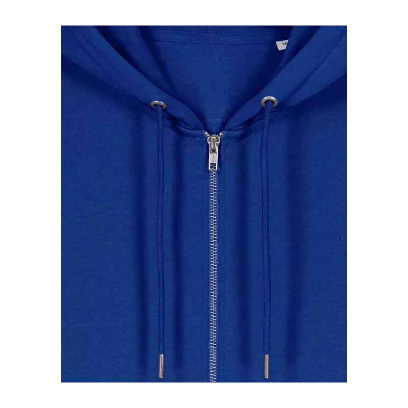 Stílusos, 350 g/m² súlyú, bolyhosított polár kapucnis pulóver modern szabásvonallal, teljes cipzárral és kenguruzsebekkel rendelkezik. 100% organikus pamutból készült.