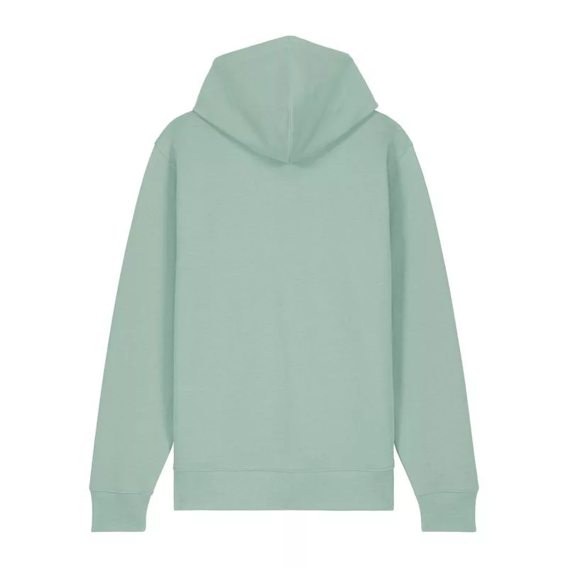 Stílusos, 350 g/m² súlyú, bolyhosított polár kapucnis pulóver modern szabásvonallal, teljes cipzárral és kenguruzsebekkel rendelkezik. 100% organikus pamutból készült.