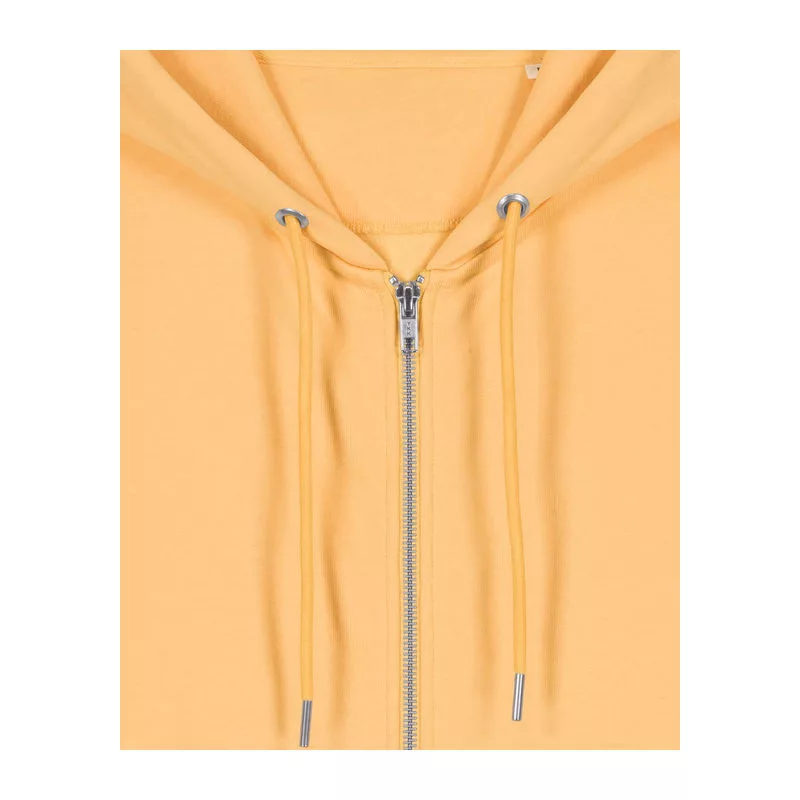 Stílusos, 350 g/m² súlyú, bolyhosított polár kapucnis pulóver modern szabásvonallal, teljes cipzárral és kenguruzsebekkel rendelkezik. 100% organikus pamutból készült.