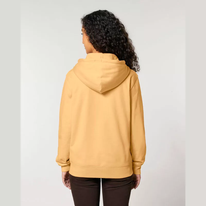 Stílusos, 350 g/m² súlyú, bolyhosított polár kapucnis pulóver modern szabásvonallal, teljes cipzárral és kenguruzsebekkel rendelkezik. 100% organikus pamutból készült.