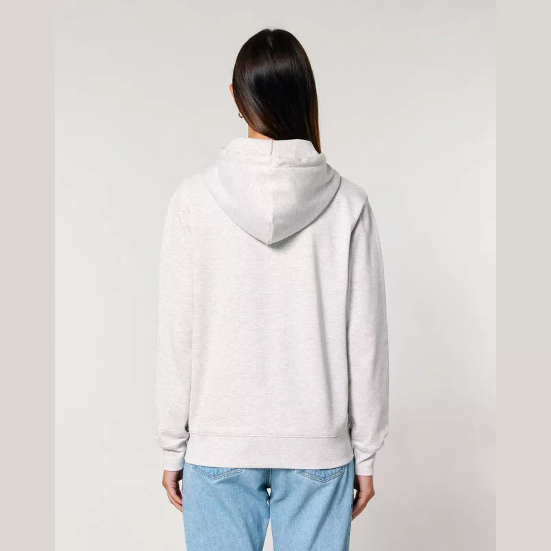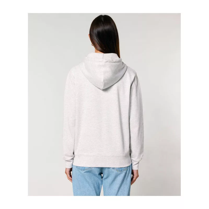 Stílusos, 350 g/m² súlyú, bolyhosított polár kapucnis pulóver modern szabásvonallal, teljes cipzárral és kenguruzsebekkel rendelkezik. 100% organikus pamutból készült.
