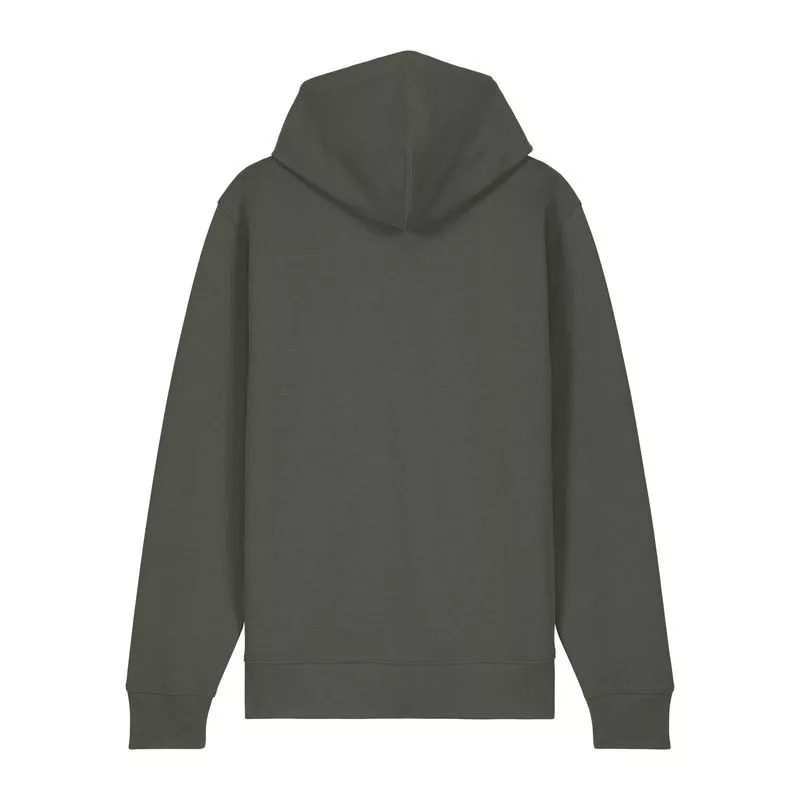 Stílusos, 350 g/m² súlyú, bolyhosított polár kapucnis pulóver modern szabásvonallal, teljes cipzárral és kenguruzsebekkel rendelkezik. 100% organikus pamutból készült.