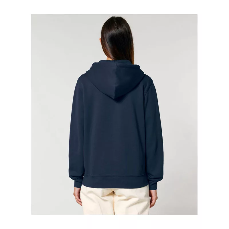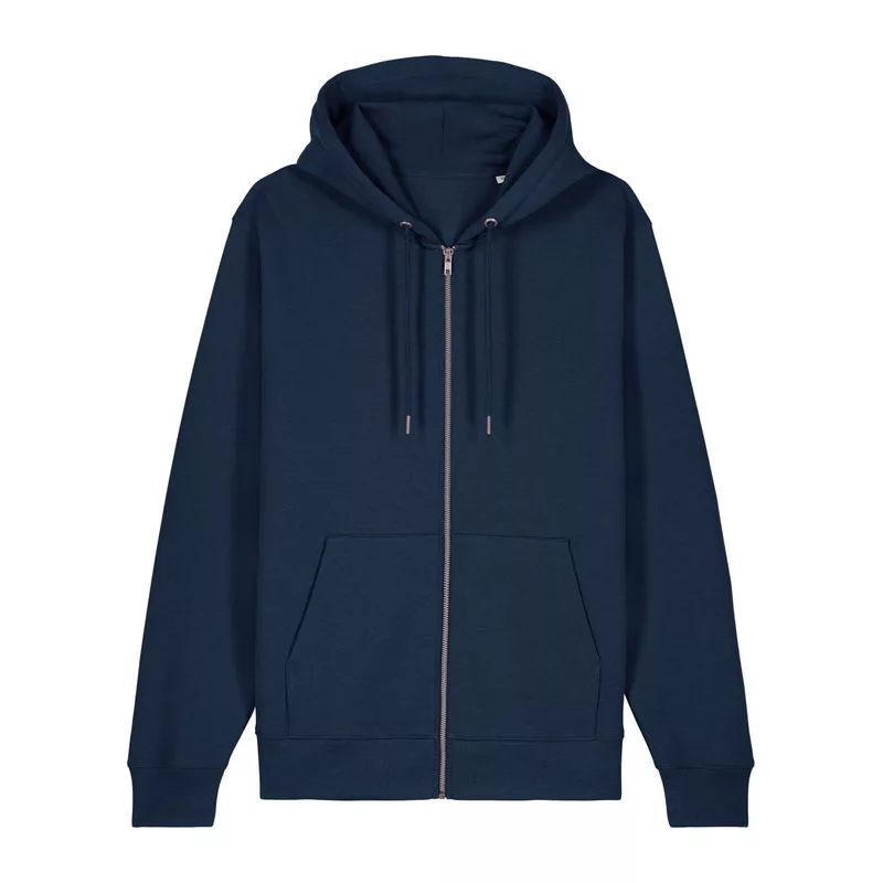 Stílusos, 350 g/m² súlyú, bolyhosított polár kapucnis pulóver modern szabásvonallal, teljes cipzárral és kenguruzsebekkel rendelkezik. 100% organikus pamutból készült.