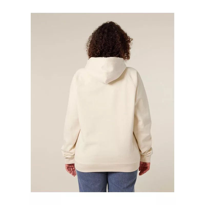 Retro stílusú, uniszex kapucnis pulóver raglán ujjakkal, dupla rétegű kapucnival és kenguruzsebbel. 100% organikus pamutból készült, 400 g/m² súlyú anyagból, amely kényelmes és laza viseletet biztosít. Kiválóan alkalmas személyre szabásra.