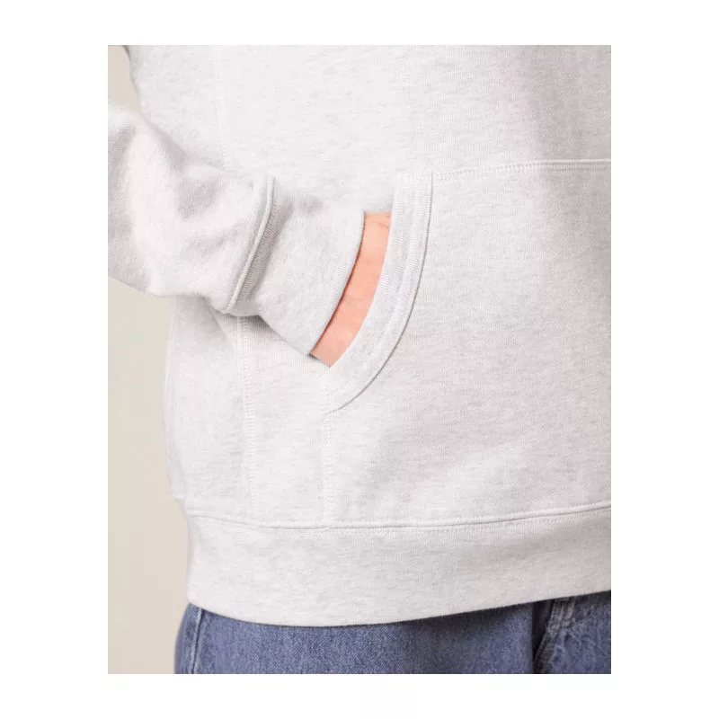 Retro stílusú, uniszex kapucnis pulóver raglán ujjakkal, dupla rétegű kapucnival és kenguruzsebbel. 100% organikus pamutból készült, 400 g/m² súlyú anyagból, amely kényelmes és laza viseletet biztosít. Kiválóan alkalmas személyre szabásra.