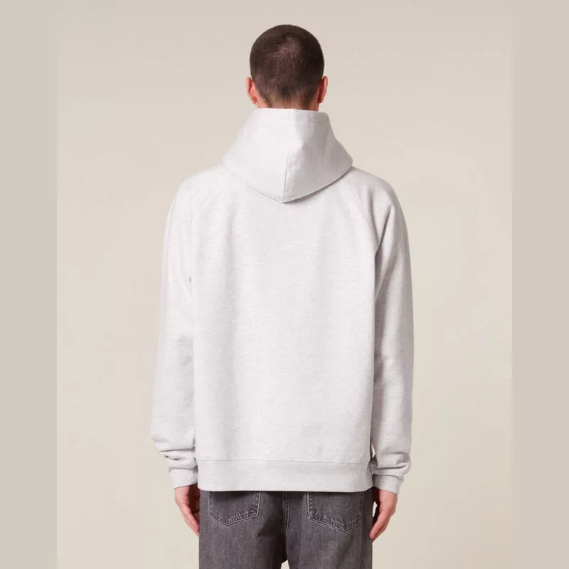 Retro stílusú, uniszex kapucnis pulóver raglán ujjakkal, dupla rétegű kapucnival és kenguruzsebbel. 100% organikus pamutból készült, 400 g/m² súlyú anyagból, amely kényelmes és laza viseletet biztosít. Kiválóan alkalmas személyre szabásra.