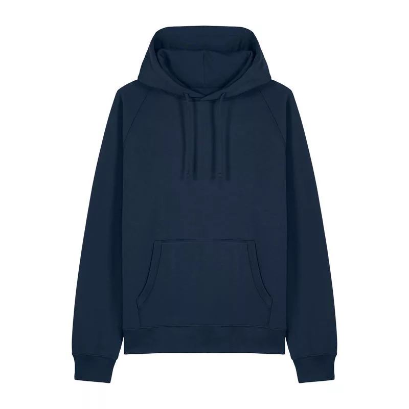 Retro stílusú, uniszex kapucnis pulóver raglán ujjakkal, dupla rétegű kapucnival és kenguruzsebbel. 100% organikus pamutból készült, 400 g/m² súlyú anyagból, amely kényelmes és laza viseletet biztosít. Kiválóan alkalmas személyre szabásra.
