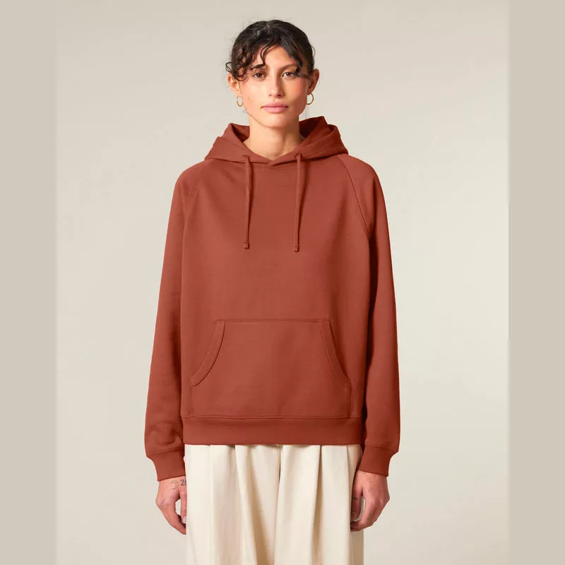 Retro stílusú, uniszex kapucnis pulóver raglán ujjakkal, dupla rétegű kapucnival és kenguruzsebbel. 100% organikus pamutból készült, 400 g/m² súlyú anyagból, amely kényelmes és laza viseletet biztosít. Kiválóan alkalmas személyre szabásra.