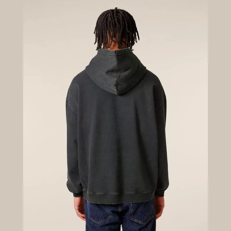 350 g/m² anyagú, prémium minőségű, vintage stílusú oversized kapucnis pulóver, amely 100% organikus pamutból készült, hogy egyedi megjelenést biztosítson. Kényelmes, bolyhos belső kialakításának köszönhetően ideális választás a környezettudatos egyedi ruházat kedvelőinek.