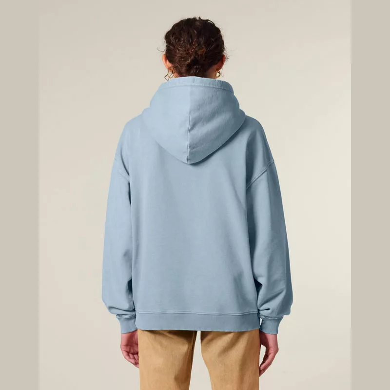 350 g/m² anyagú, prémium minőségű, vintage stílusú oversized kapucnis pulóver, amely 100% organikus pamutból készült, hogy egyedi megjelenést biztosítson. Kényelmes, bolyhos belső kialakításának köszönhetően ideális választás a környezettudatos egyedi ruházat kedvelőinek.