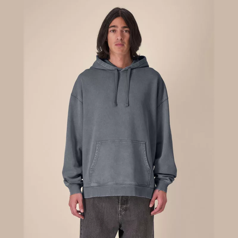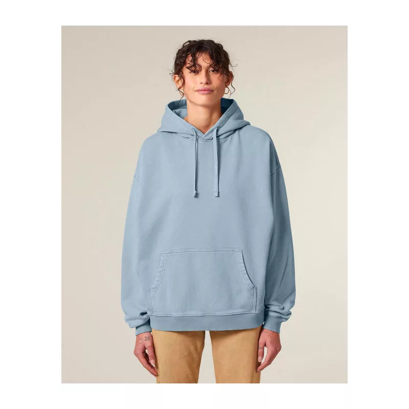 350 g/m² anyagú, prémium minőségű, vintage stílusú oversized kapucnis pulóver, amely 100% organikus pamutból készült, hogy egyedi megjelenést biztosítson. Kényelmes, bolyhos belső kialakításának köszönhetően ideális választás a környezettudatos egyedi ruházat kedvelőinek.