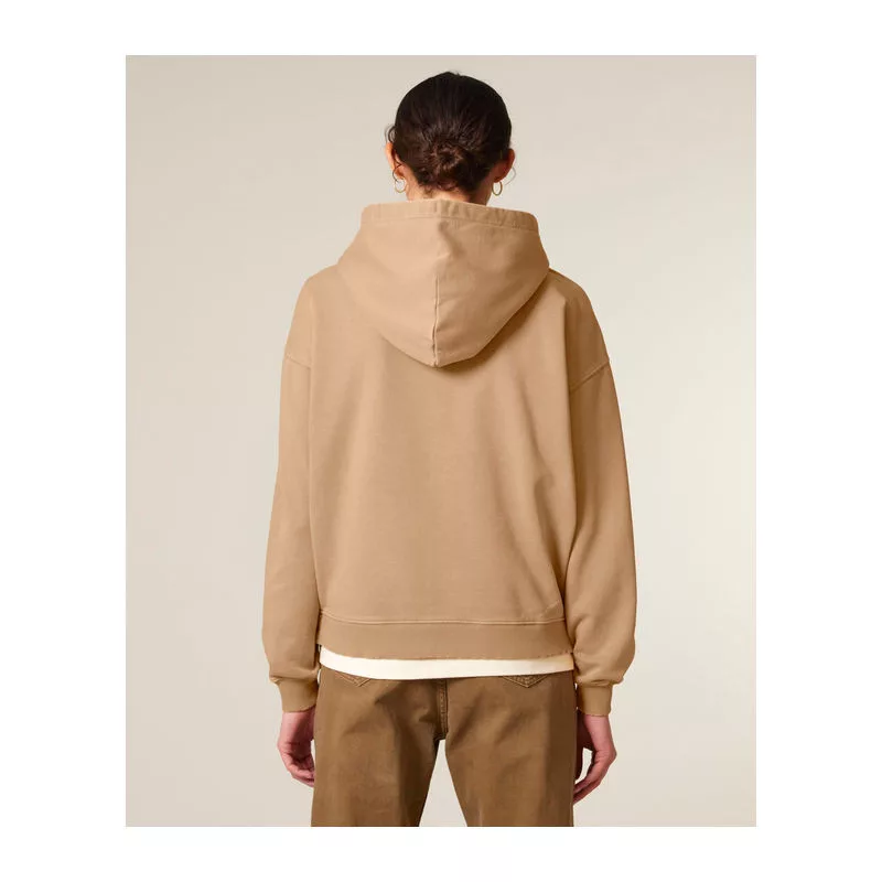 350 g/m² anyagú, prémium minőségű, vintage stílusú oversized kapucnis pulóver, amely 100% organikus pamutból készült, hogy egyedi megjelenést biztosítson. Kényelmes, bolyhos belső kialakításának köszönhetően ideális választás a környezettudatos egyedi ruházat kedvelőinek.