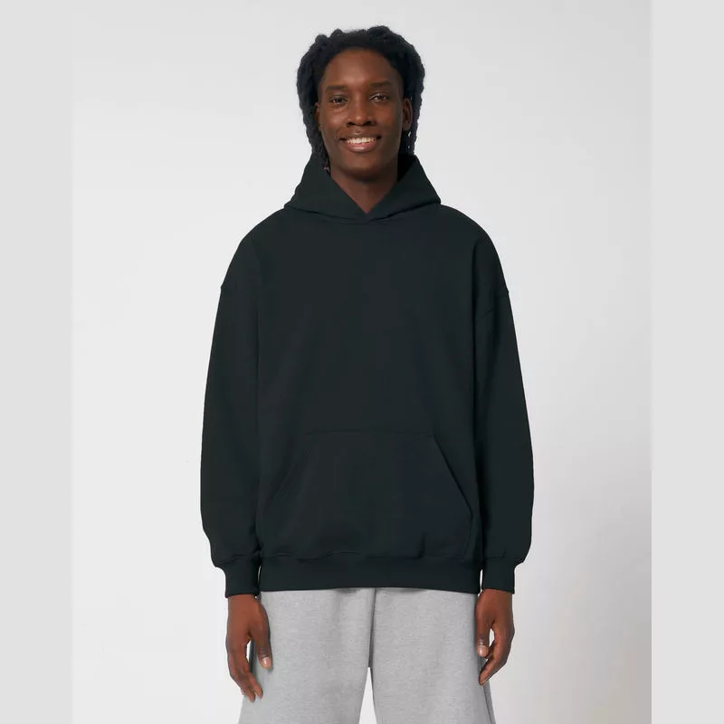 Élvezze a kényelmet ezzel az uniszex bő szabású kapucnis pulóverrel, amely dupla rétegű kapucnival, kenguruzsebbel és tartós, ikertűs varrással készült. Ideális választás a mindennapokra.