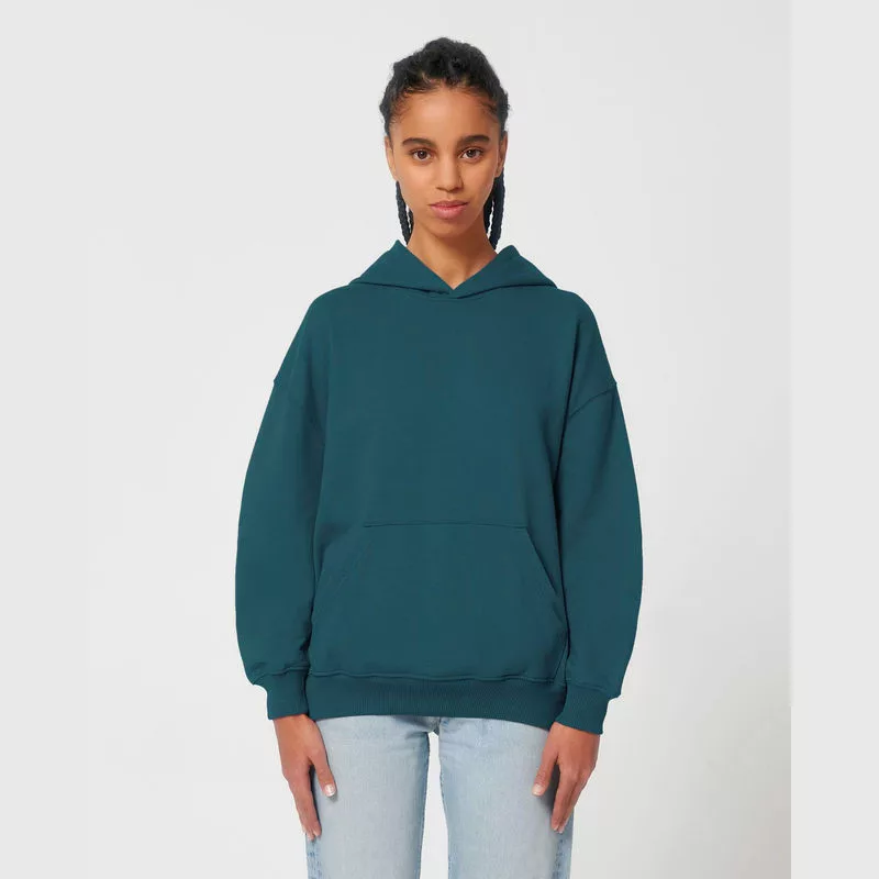 Élvezze a kényelmet ezzel az uniszex bő szabású kapucnis pulóverrel, amely dupla rétegű kapucnival, kenguruzsebbel és tartós, ikertűs varrással készült. Ideális választás a mindennapokra.