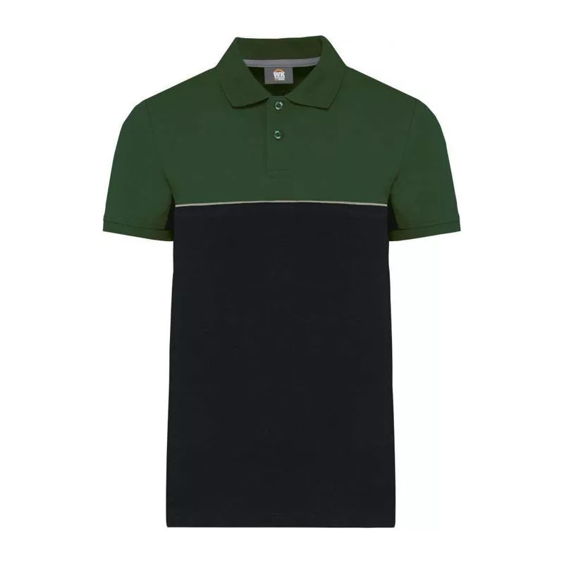 Made from 60% combed cotton and 40% recycled polyester;Piquéknit;Anti-pilling treatment;Washable at 60°C;Slim fit;Placket with 2 matching buttons;1x1 ribbed collar with contrasting twill taped neck;Contrasting piping between the two-tone parts of the garment (body. front and back);Ribbed cuffs;Side slits with contrasting twill stripe;Twin needle finishing at hem;Tear-away brand label;