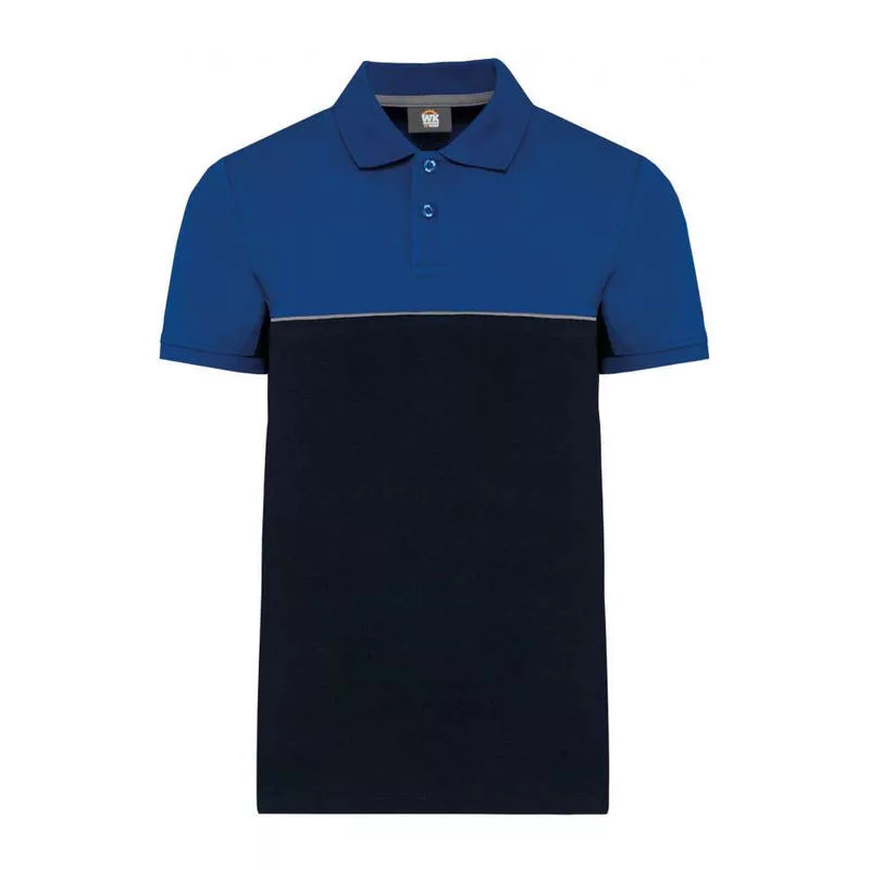 UNISEX ECO-FRIENDLY TWO-TONE SHORT SLEEVE POLO SHI (XS, Navy/Royal Blue)
