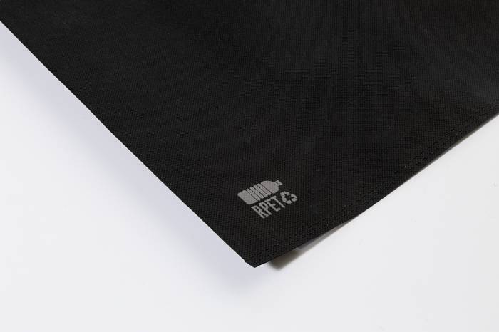 RPET non-woven bevásárlótáska hosszú hordfüllel, 70 g/m². Megkülönböztető RPET felirattal.