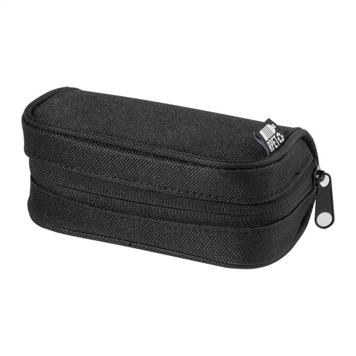 3 részes utazó szett cipzáras RPET tokban. Tartalmaz egy poliészter bőröndövet 3 számjegyű zárral, PP bőröndcímkét és fém 3 számjegyű bőröndzárat. 600D RPET poliészter, megkülönböztető RPET címkével.